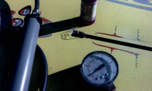 crack. If there are bubbles, you got a leak. (as the air inside the board